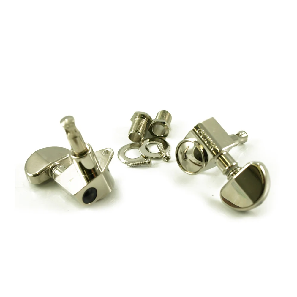 Original Grover Rotomatics 14:1 ratio, sold as a set of 6. Includes washers, wood screws and bushings. The housing provides a maximum bearing for worm, gear and string post. Worm and gear are precison cut for perfect meshing. This eliminates backlash and slippage. Gear box has a special lubricant for lifetime, trouble-free service.