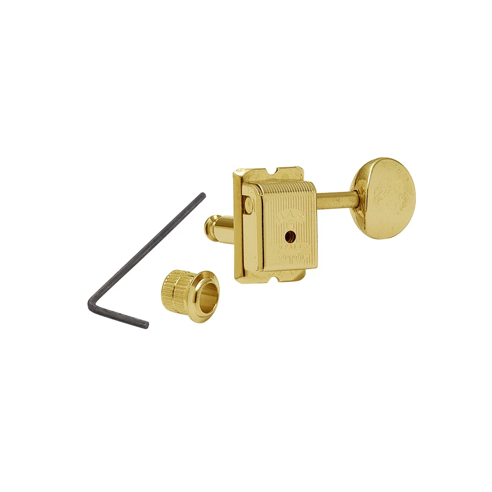 Creating the perfect down pressure over a guitar nut is a complex balance between headstock angle and tuning machine post height. Height adjustable posts take away the guesswork by allowing you to dial in the exact angle needed for friction, string pressure and open string sound and sustain. In addition to the adjustable post heights, this set also features locking posts that will ensure that the strings remain locked into the machine head to avoid the possibility of the strings slipping out of tune. Please note that these tuners have "H.A.P. Gotoh" stamped on the rear casing.